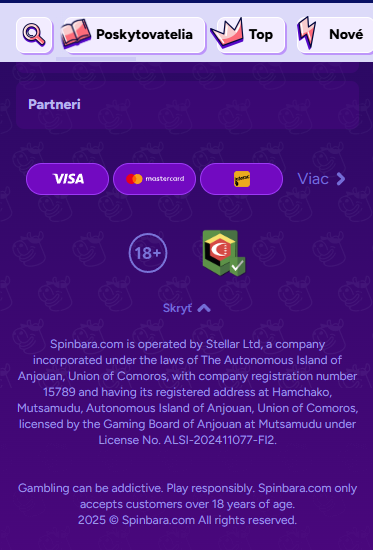 Spinbara spája kasíno a stávkovú kanceláriu v jednom rozhraní so slovenčinou, rýchlymi vkladmi/výbermi a širokou ponukou hier. Nižšie nájdete kľúčové vlastnosti, licenciu a bezpečnostné zásady pre hráčov zo Slovenska.